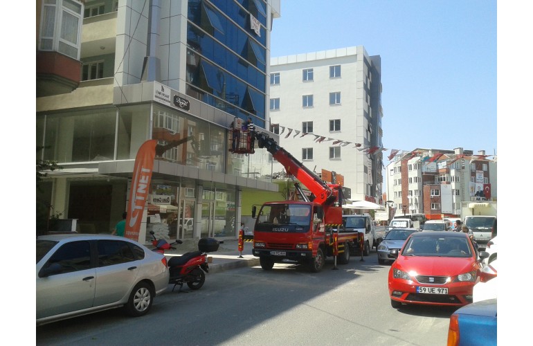 Çerkezköy de sepetli vincimiz ile reklam uygulaması