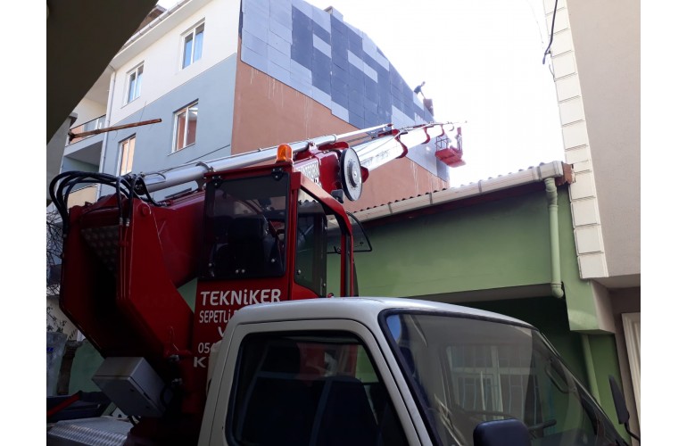 Saray'da dış cephe mantolama işimiz sepetli vinç ile
